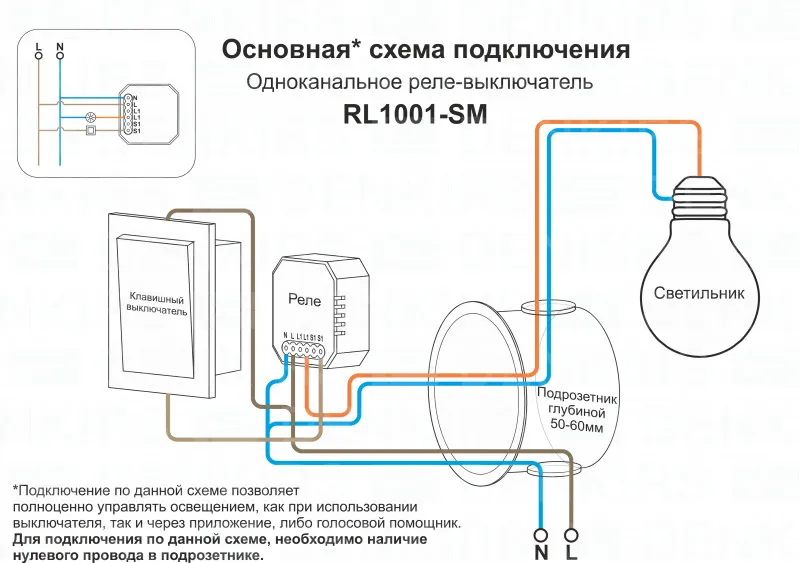 Wi-Fi реле-выключатель одноканальное Denkirs 1x2300Вт/250Вт для LED RL1001-SM купить в Ступино по лучшей цене