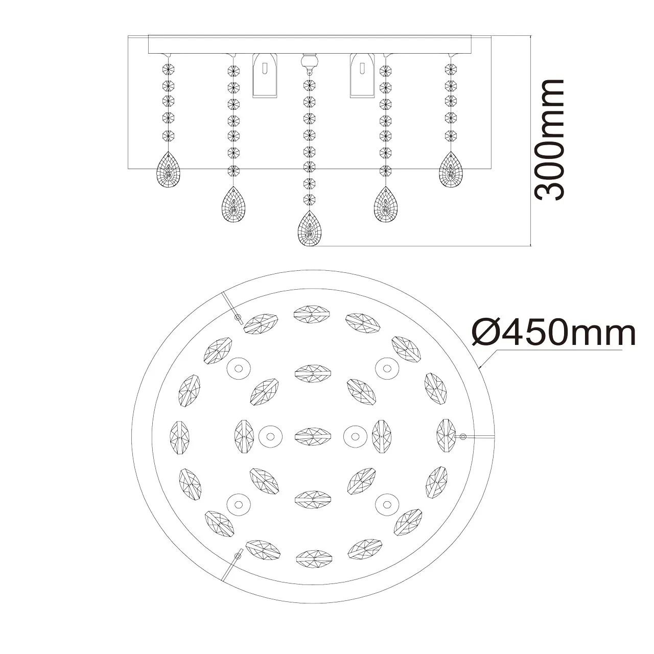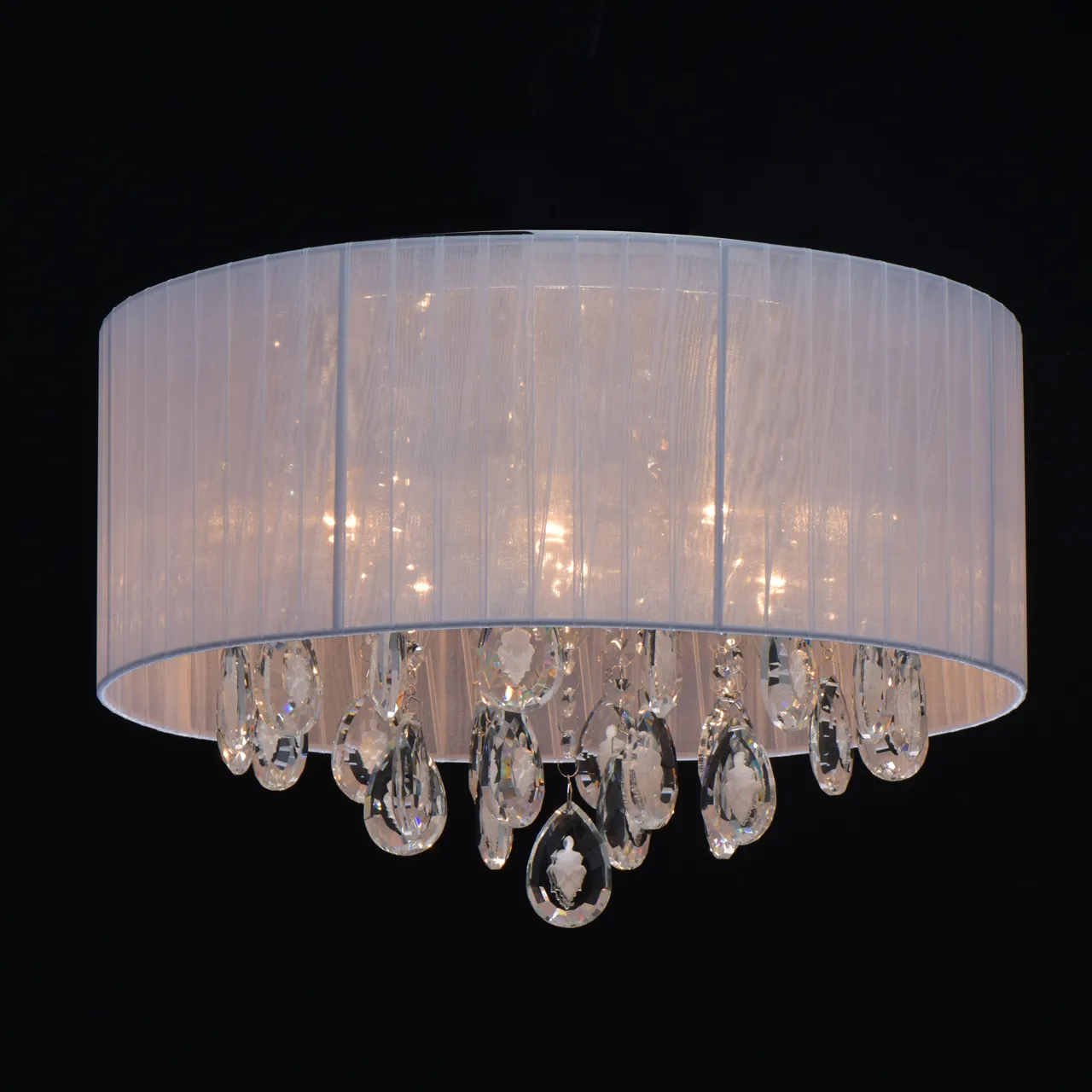 Основание/металл Плафон/текстиль/белый Декор/хрусталь с резным белым орнаментом